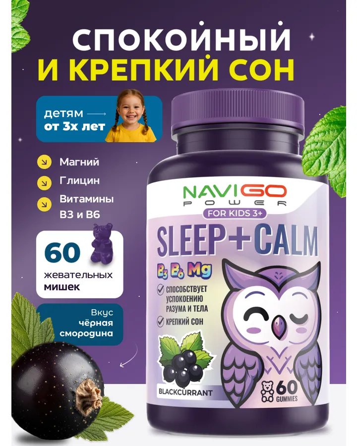 БАД NAVIGO POWER Магний+Глицин для детей 60 жевательных мармеладок со вкусом ягод