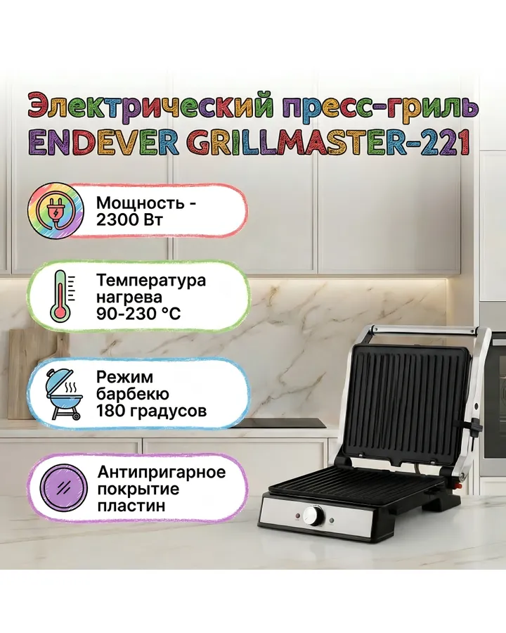 Электрический пресс-гриль ENDEVER ENDEVER GRILLMASTER-255