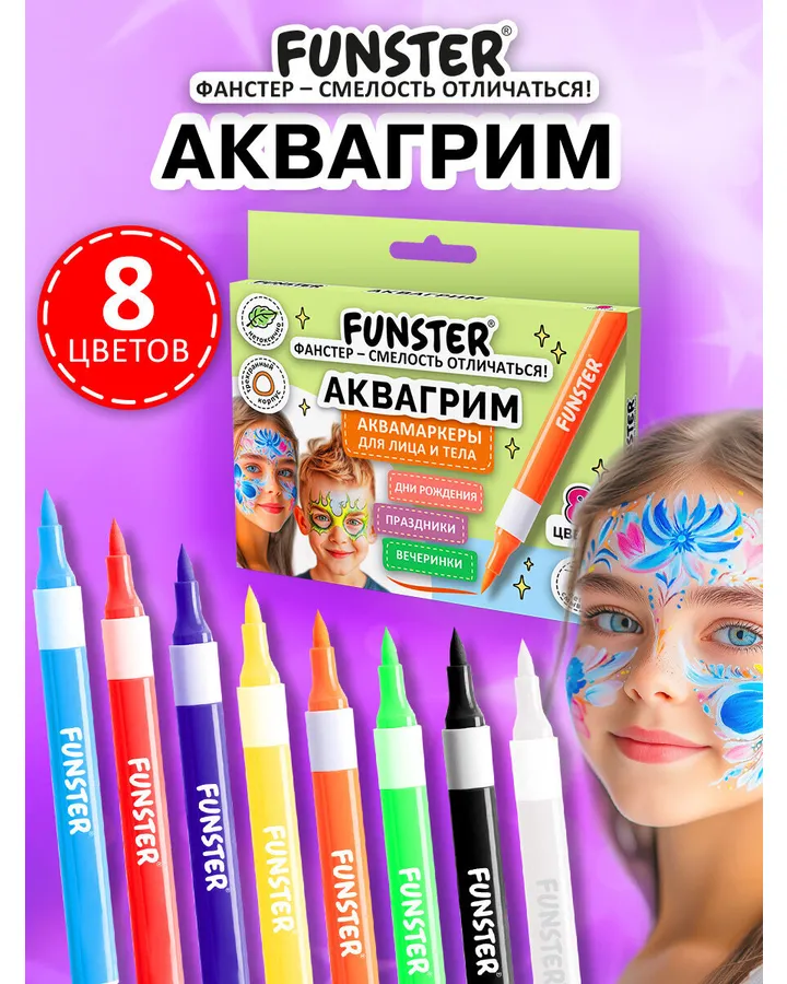 5Аквагрим Funster Классические, золото, серебро краски 12 цв.Хороший товар. Смывается водой с мылом нормально