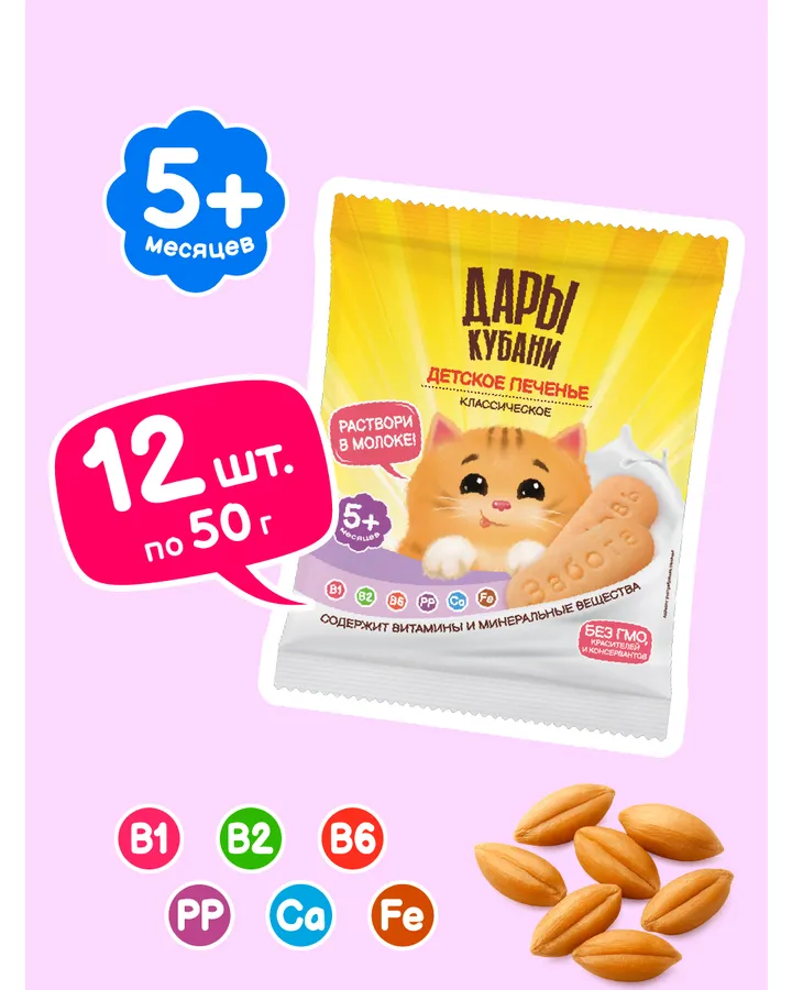 5Печенье детское Дары Кубани 5 злаков с кальцием 50 гр х 12 штпрекрасная альтернатива перекуса для малыша
