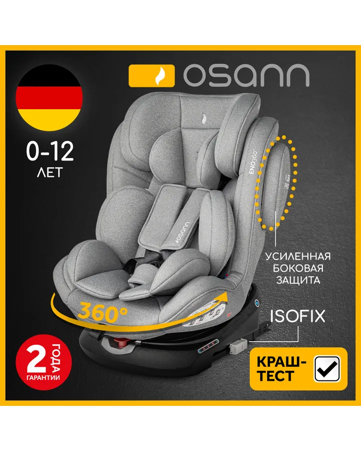 Автокресло Osann Eno 360 Caramel Isofix 0+/1/2/3 (0-36 кг) коричневыйСделано добротно. Устанавливается достаточно просто. Засыпает в нем моментально. Ребенку удобно в нем. И цена оказалась самой доступной.