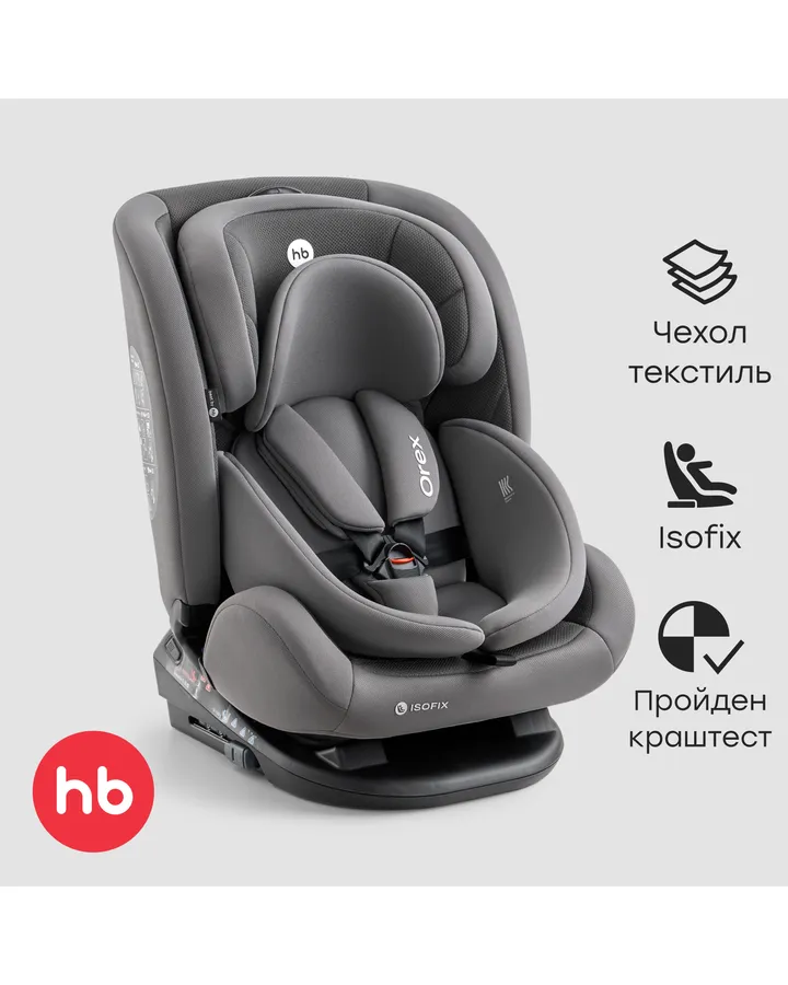 Автокресло Happy Baby Orex Isofix 0+/1/2/3 (0-36 кг) серый