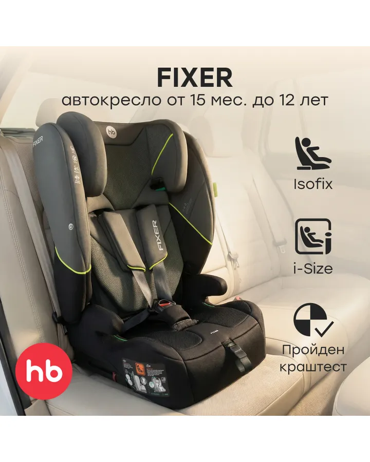 5Автокресло Happy Baby Fixer Isofix 1/2/3 (9-36 кг) черныйотличное кресло, единственное чего не хватает чтобы спинка откидывалась.