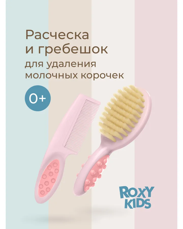 5Щетка, гребень ROXY-KIDS натуральная щетинаХорошая, мягкая расчёска. Гребешок тоже с закругленными зубчиками. Я корочки даже просто расческой вычесываю.