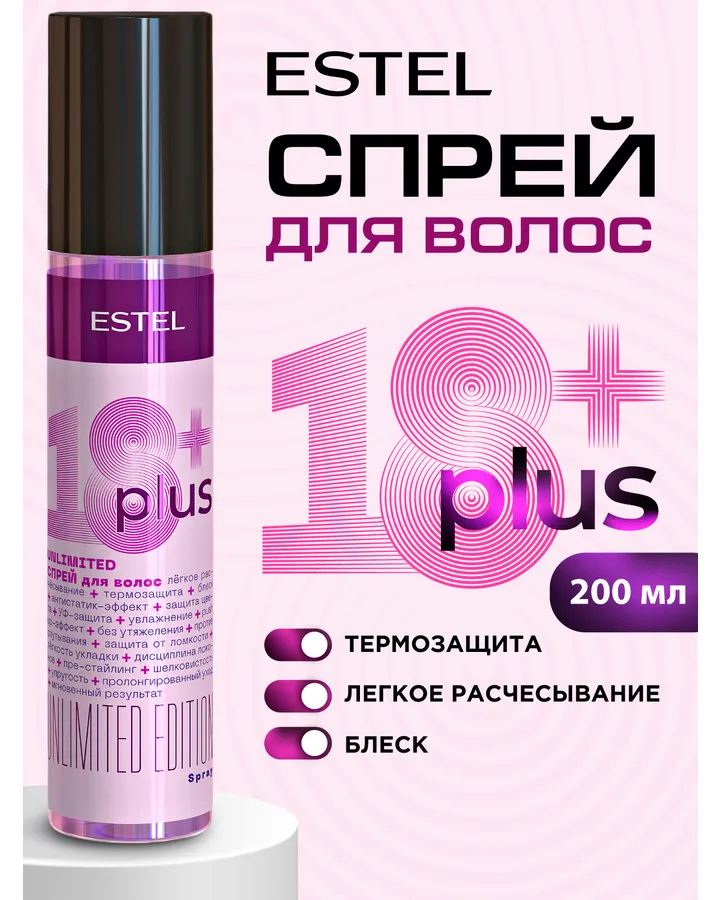 5Увлажняющий спрей ESTEL 18+ PLUS термозащита для волос лёгкое расчёсывание 200 млЛюбимый спрей для волос