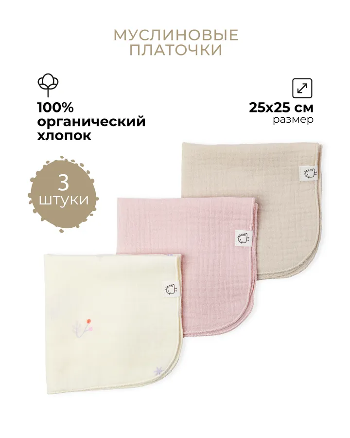 Платок BUBA KIDS Утка муслин 3 шт.