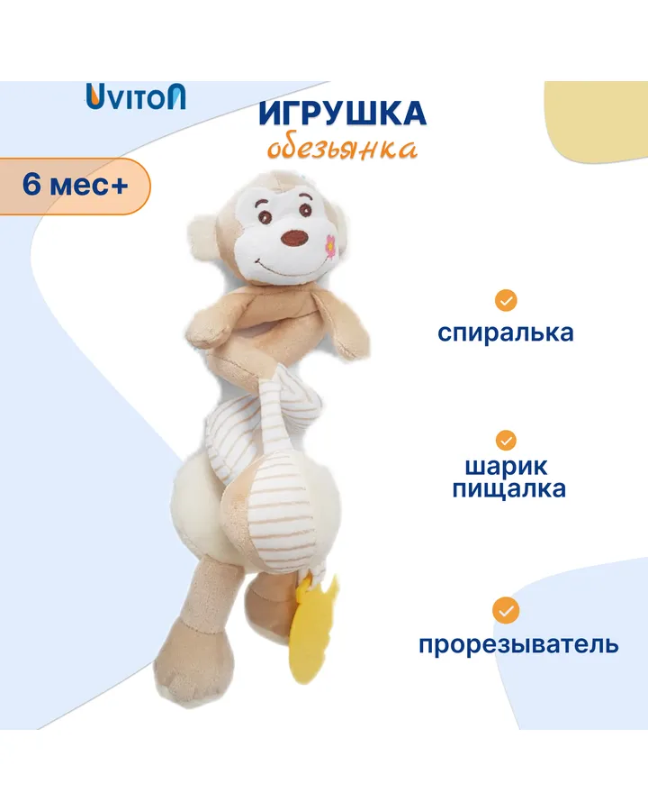 Игрушка Uviton подвеска ОбезьянкаХорошая игрушка ,очень мягкая приятная на ощупь ,хорошо растягивается 👍