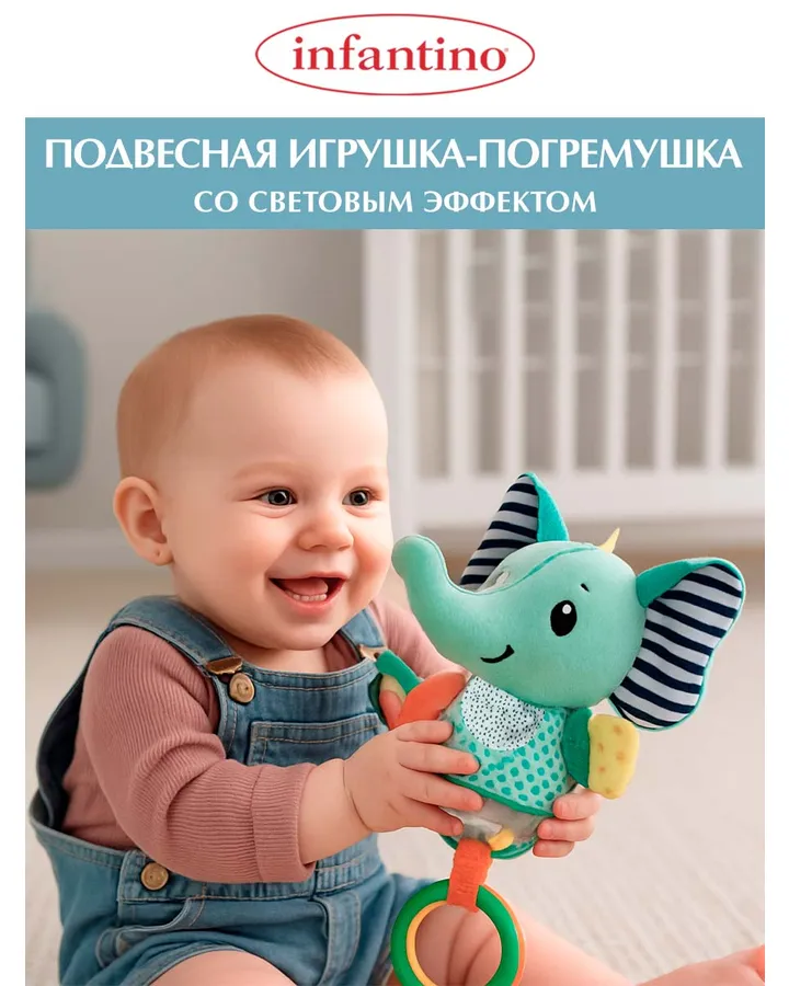 Игрушка INFANTINO подвеска Слоник со световыми эффектамиКачественная игрушка, ребенку нравится