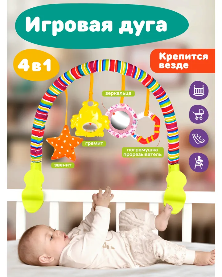 Дуга с игрушками Жирафики подвесная в коляску на кроватку с погремушками Забава
