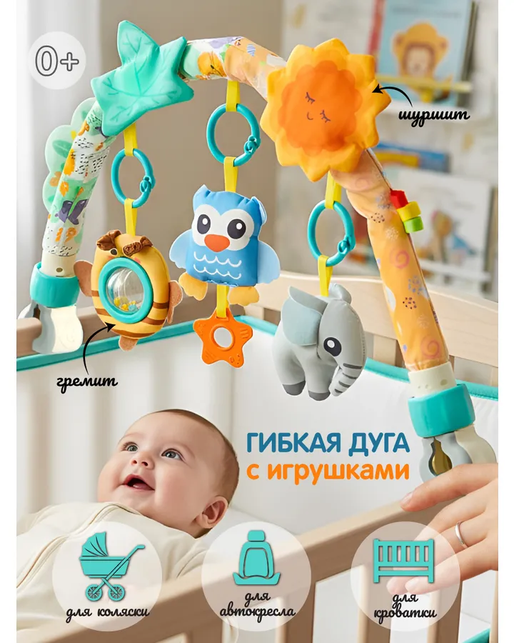 5Подвеска / дуга развивающая "Нежность", в кор.Хорошая игрушка, малыш 2,5-3 мес с удовольствием тянет к подвескам ручки, трогает и тянет)