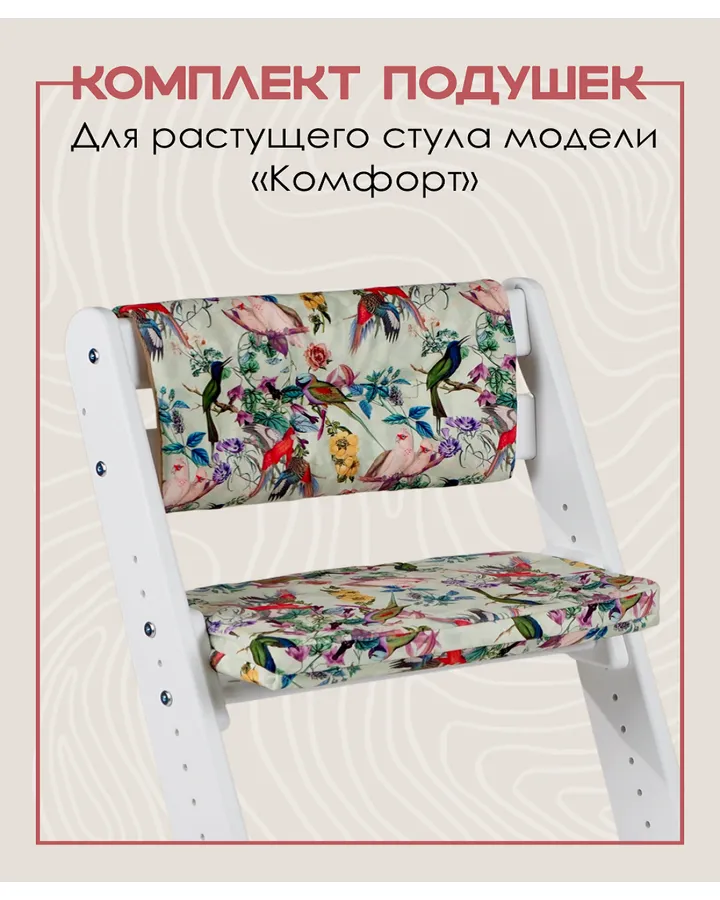 Мягкие, комфортные подушки для стульчика. На серый стул Конёк- Горбунок отлично подошли. Приятный материал, хорошо чистится. Покупкой довольна.