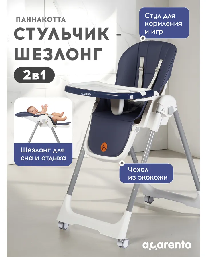 Стульчик для кормления Acarento Marmellata зеленыйУдобный в качестве шезлонга, как стул тоже нормальный, единственное маленький
