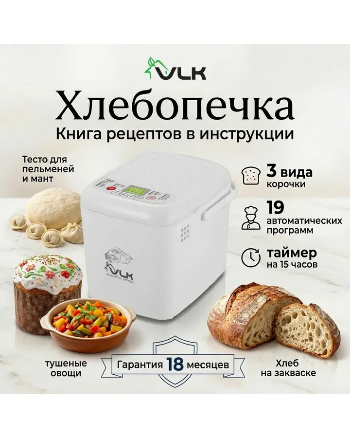 Хлебопечь VLK Palermo-5200Хлебопечка прекрасно его выпекает, любой пекарне на зависть) если все обзаведутся хлебопечками, то пекарням точно придётся не сладко)) конечно, для выпечки понадобится уделить немного личного времени, но совсем немного. Большую часть печка берёт на себя, вам не понадобится даже выстаивать тесто, наблюдать как и когда оно поднимается и т.п, все эти процессы хлебопечка регулирует сама, а потом проступает к выпечке. Что делаю я: заполняю контейнер ингредиентами, ставлю его в хлебопечку, выбираю необходимые мне настройки, закрываю крышку, открываю крышку, наслаждаюсь готовым хлебом. Вот и всё) времени на выпечку иногда уходит достаточно много, но отслеживать ничего не надо, выключение автоматическое.