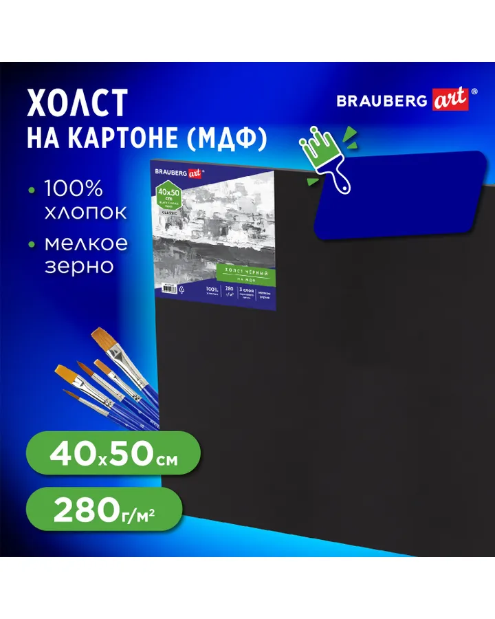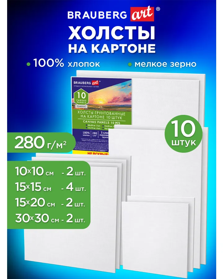 5Холст Brauberg на картоне для рисования Art Classic 18*24см грунтованныйХолст отличный! Краски лёгко ложатся.