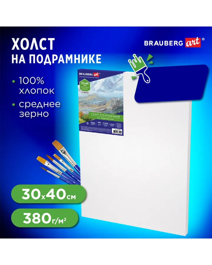 5Холст для рисования Brauberg на подрамнике 20х30 см грунтованный 100% хлопок набор 2 штукиРекомендую