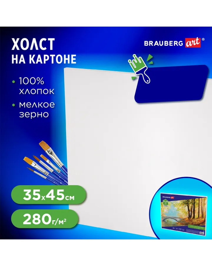 5Холст Brauberg на картоне для рисования Art Classic 18*24см грунтованныйХолст отличный! Краски лёгко ложатся.