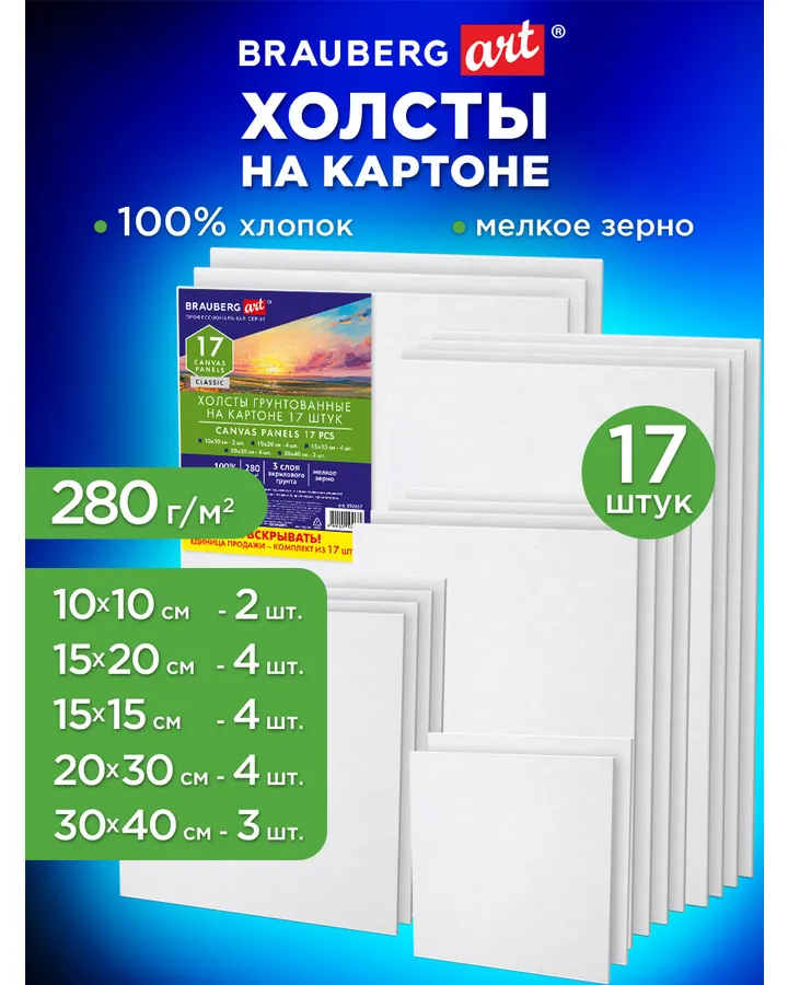 5Холст Brauberg на картоне для рисования Art Classic 18*24см грунтованныйХолст отличный! Краски лёгко ложатся.