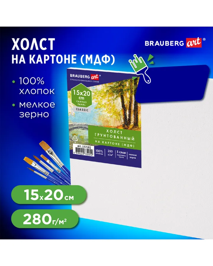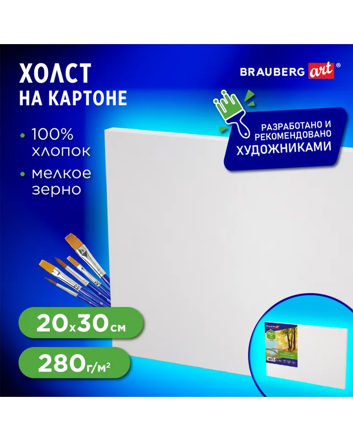 Холст Brauberg на картоне для рисования грунтованный хлопок Art Classic