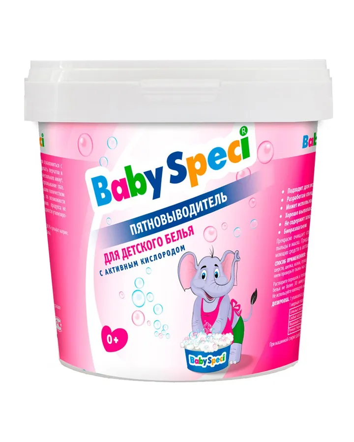 Пятновыводитель Baby SpeciОтстирывает все пятна без разбора.Даже до стирки насыпала , потерла щеткой и в машину .Вытащила Класс - все чисто !