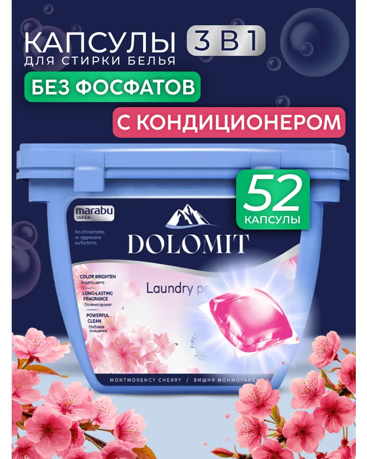 Капсулы для стирки MARABU Dolomit Вишня монморанси 50 шт.обалденные капсулы, запах очень приятный