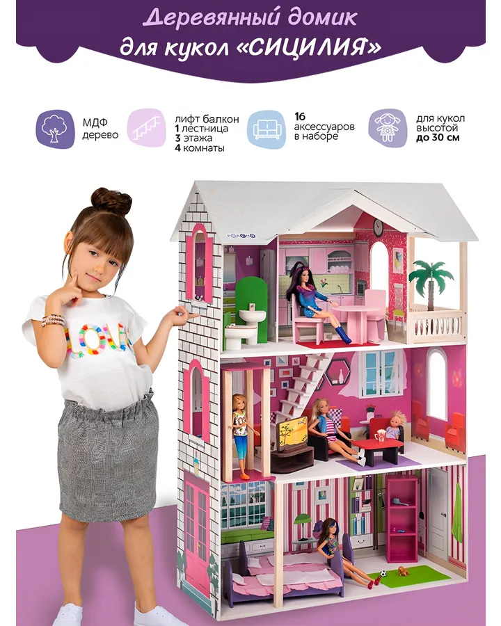 Домик для кукол PAREMO 120 см с мебельюОчень крутой. Рекомендую