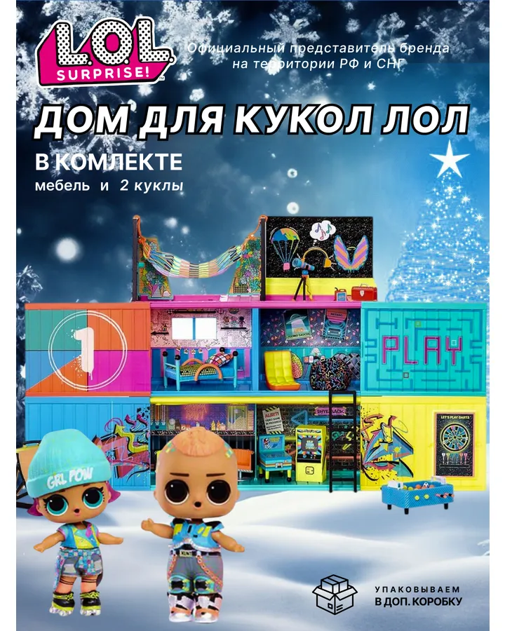 Домик для кукол L.O.L. Surprise! с мебельюОптимальный домик, красивый, много всего, хорошее качество пластика, но при этом не такой огромный как остальные. Дочь довольна!)