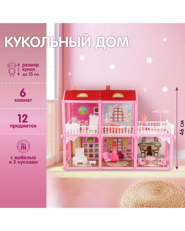 Домик для кукол Veld Co 48 см с мебельюКрасивый и компактный. Деталей куча, первое впечатление, что собирать долго придётся.