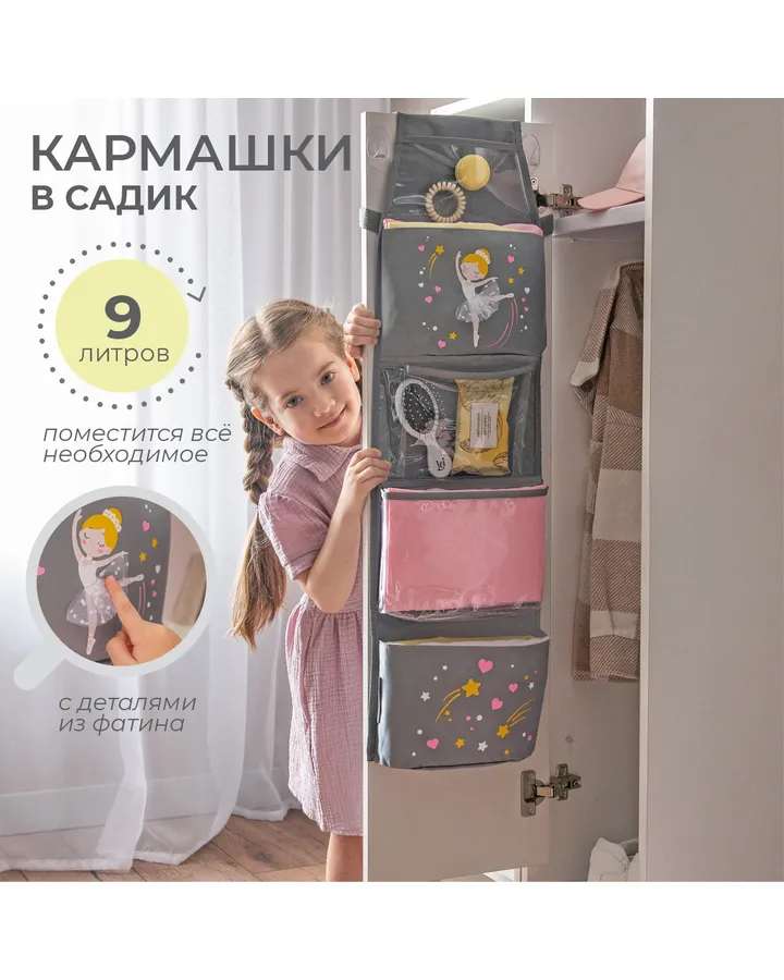 4Кармашки Всё на местах в садик для детского шкафчика КотикНормальные кормашки. Ткань конечно хотелось бы другую, более прочную.