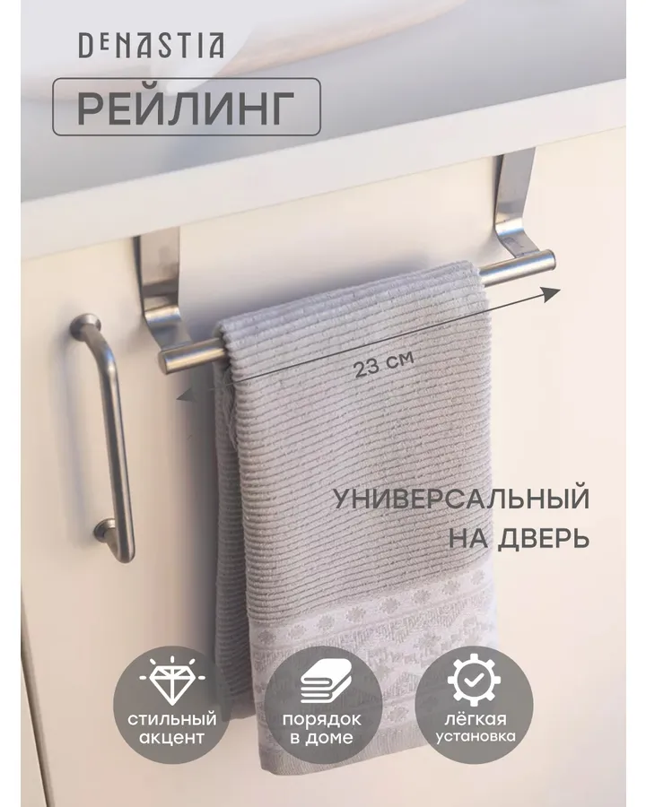 Набор крючков 2 шт DeNASTIA на липучке нержавеющая сталь серый
