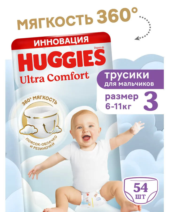 Трусики Huggies Ultra Comfort для мальчиков 3 (6-11 кг) 54 шт.