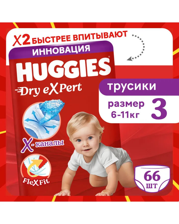 Трусики Huggies Dry eXpert 3 (6-11 кг) 66 шт.