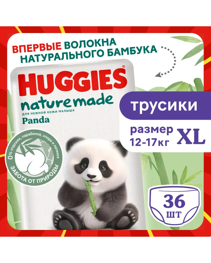 Трусики Huggies Naturemade Panda XL (12-17кг) 36 шт.