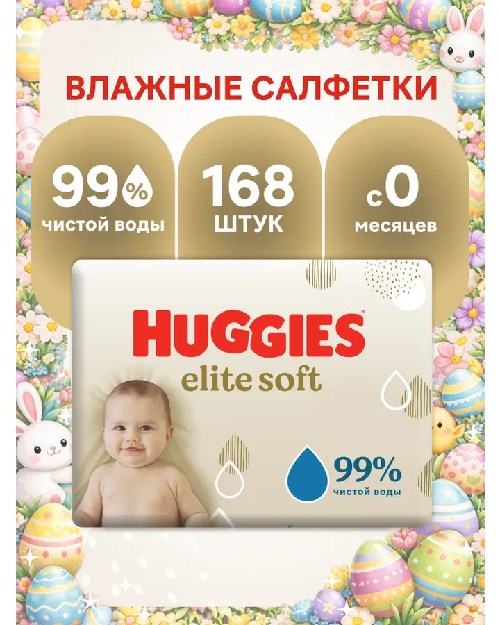 Влажные салфетки Huggies Elite Soft 168 шт.