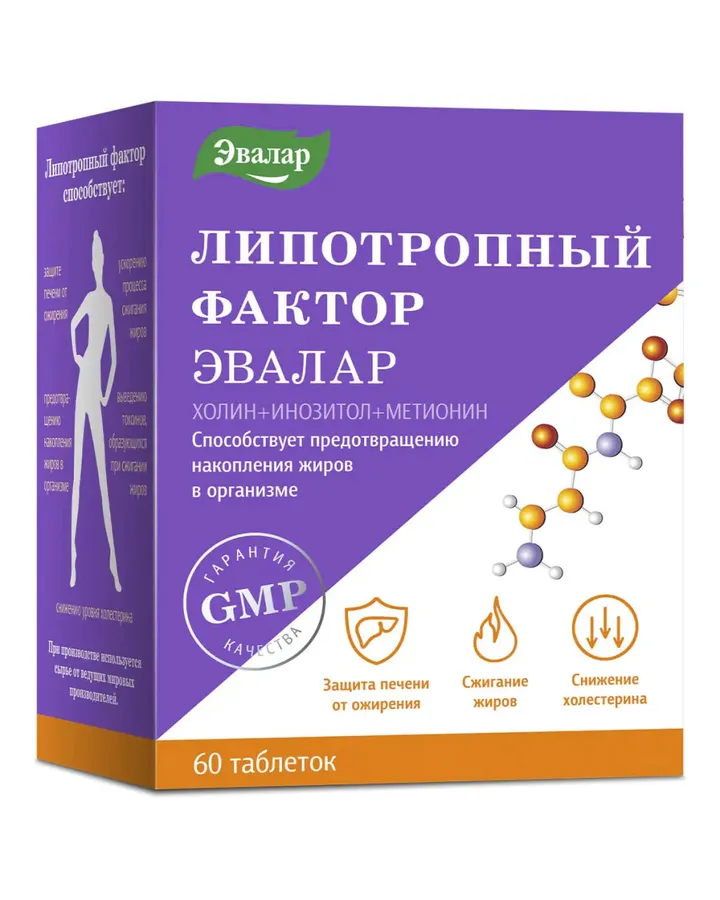 БАД Эвалар Липотропный фактор ускоряет сжигание жиров 60 таблеток