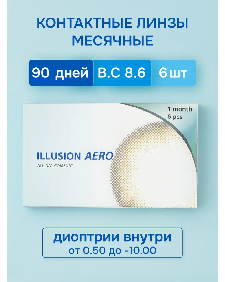 Контактные линзы ILLUSION aero на 1 месяц -1.00/14.2/8.6 6шт.