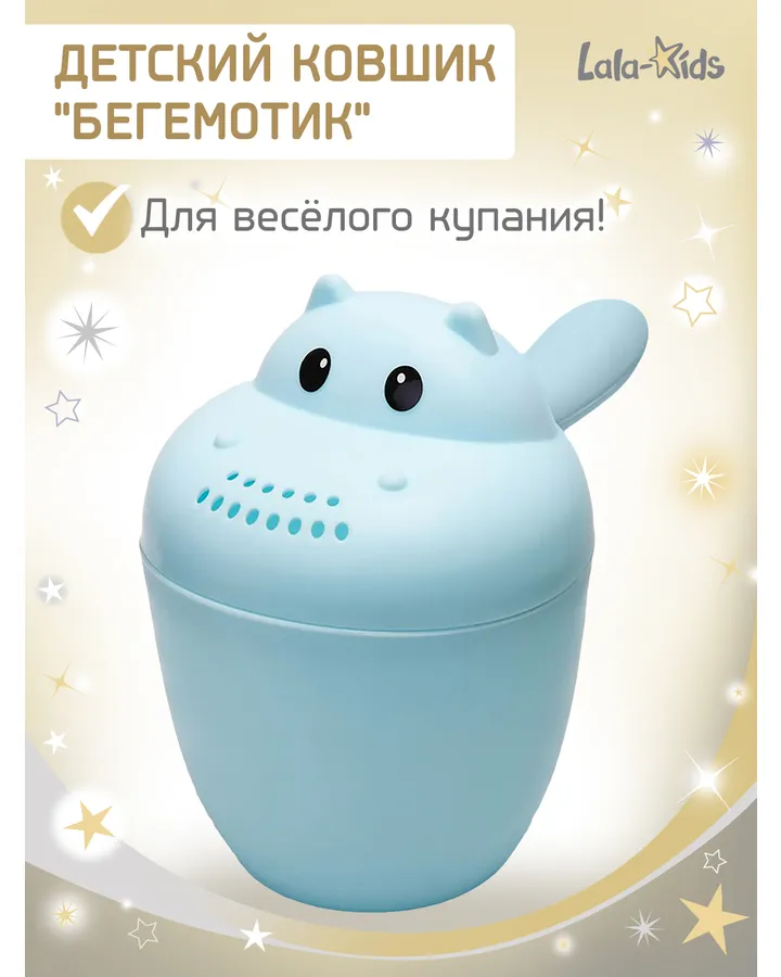Ковш LaLa-Kids 0.5 л Бегемотик голубой 1 шт.