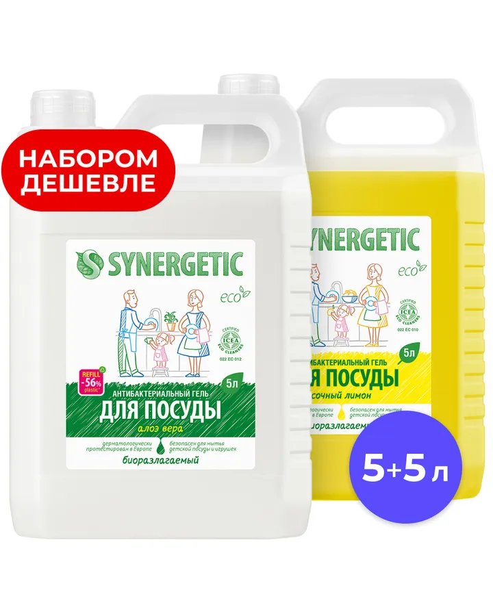 Средство для мытья посуды Synergetic Алоэ Лимон 5000 мл 2 упак.