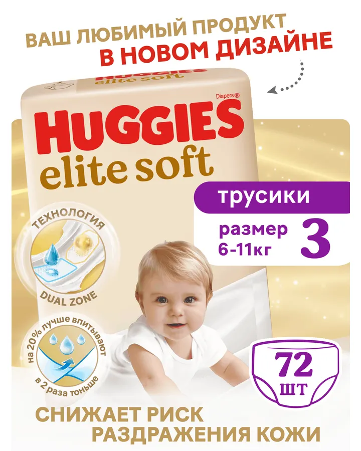 Трусики Huggies Elite Soft 3 (6-11 кг) 72 шт.