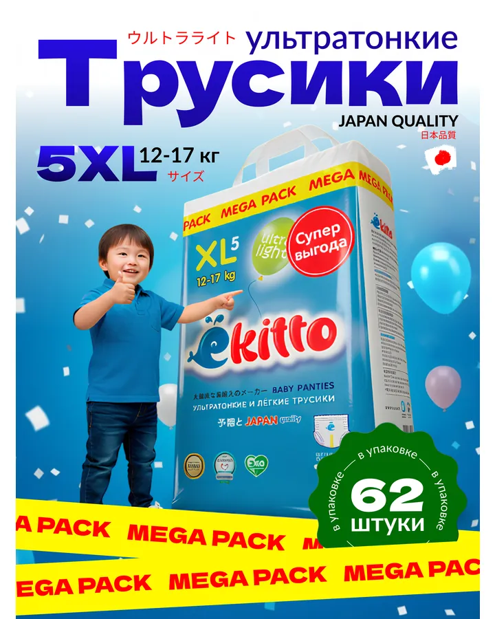 Трусики Ekitto L (9-14 кг) 44 шт.