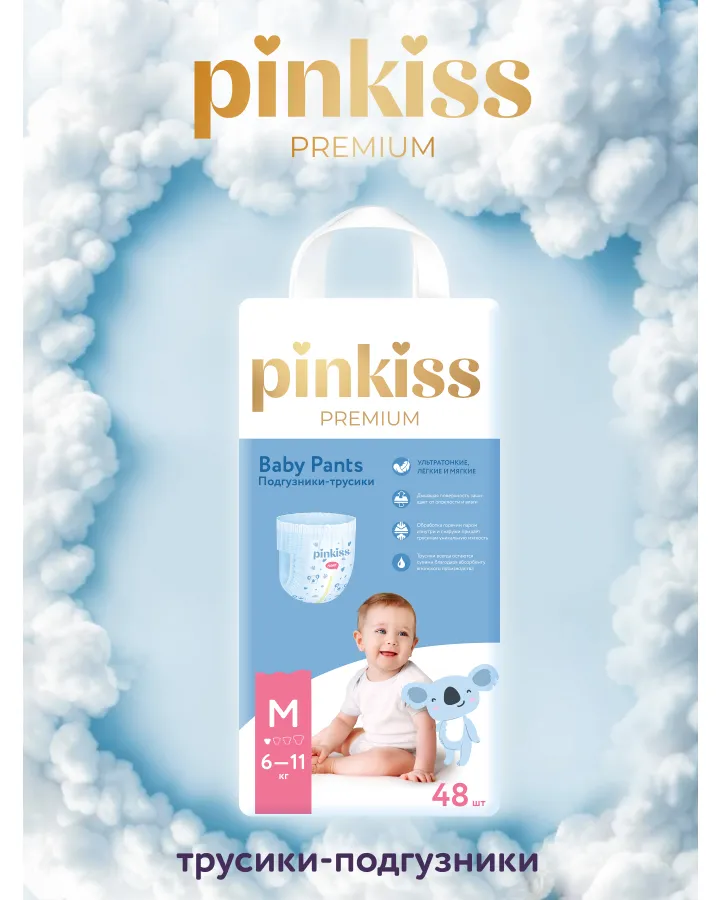 Трусики Pinkiss M (6-11 кг) 52 шт.Очень люблю этот бренд, покупаю часто. Тонкие, хорошо впитывают Ввдерживают даже ночь. Есть пара нюансов, но для меня они некртичны: 1. Рвутся по бокам с усилиями. 2. Есть подгузники более нежные, но там и уена выше. К покупке рекомендую!