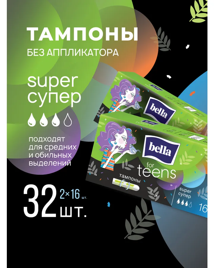 Тампоны гигиенические for teens Bella super, 16 шт. х 2 уп.