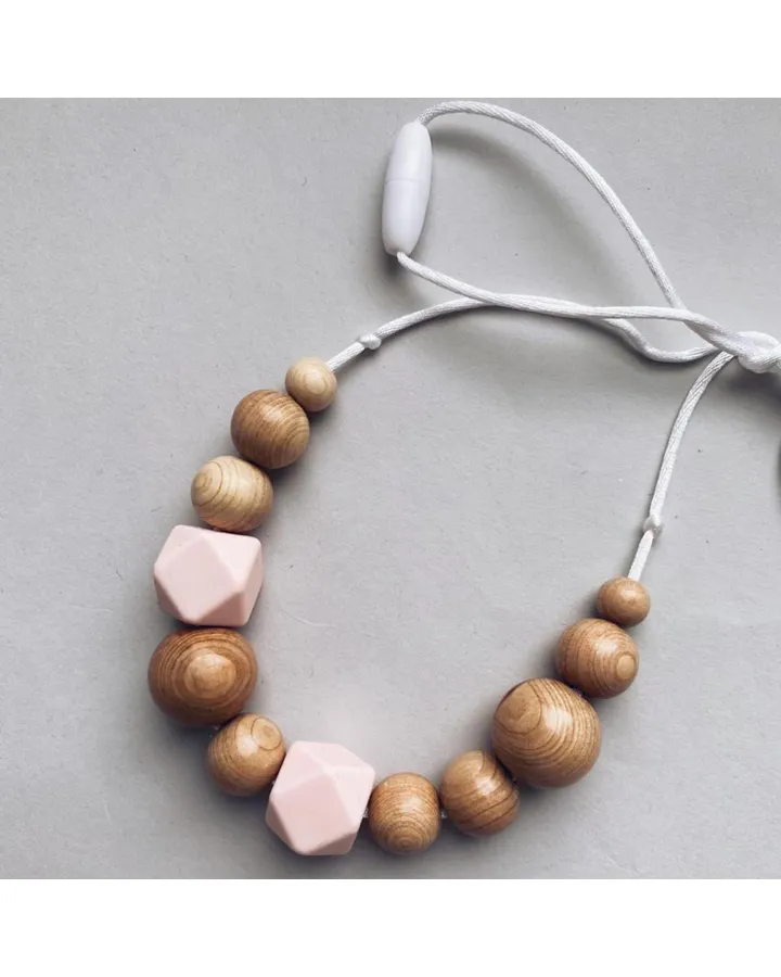 Качественные бусы, крепкая нить, силиконовые элементы очень мягкие,деревянные гладкие. Ребенок перебирает в ручках, пробует на зуб играет. Я купила их надевать для кормления чтоб отвлекать ребенка от лица. Вкусный запах дерева,можжевельника, когда не пользуемся висит над кроваткой.