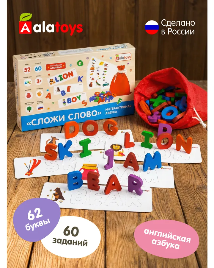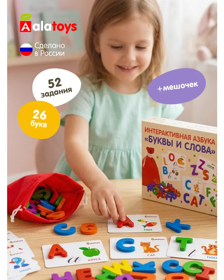 Игрушка Alatoys Алфавит 52 буквы, 64 задания в ассортименте