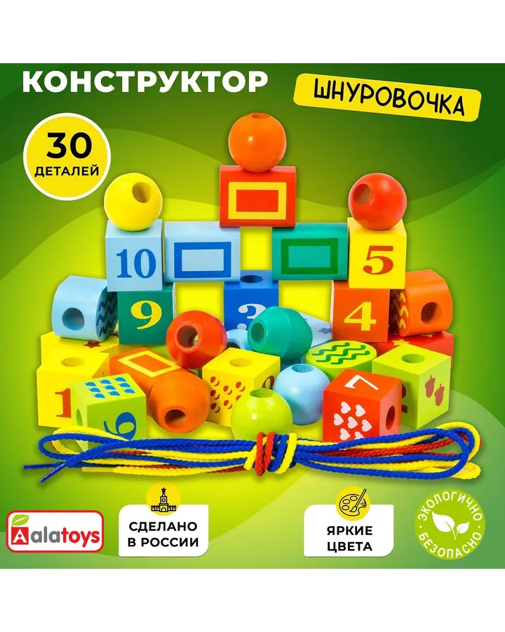 Игрушка Alatoys шнуровка Конструктор сортер 35 деталей