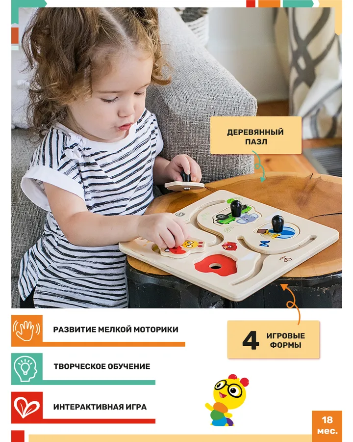 Игрушка Play Go сортер Часы с деревянными фигурами