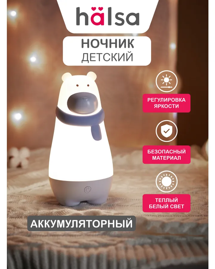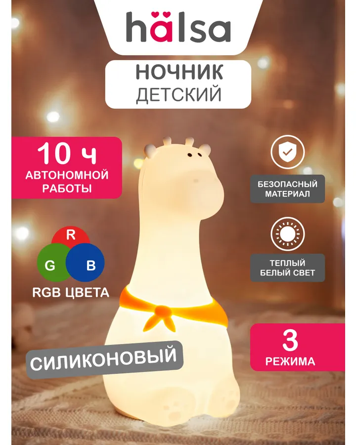 Игрушка ночник HALSAОтличный ночник, работает как надо. Только кнопка шумновата, но это проблема только для деток, непривычных к шуму