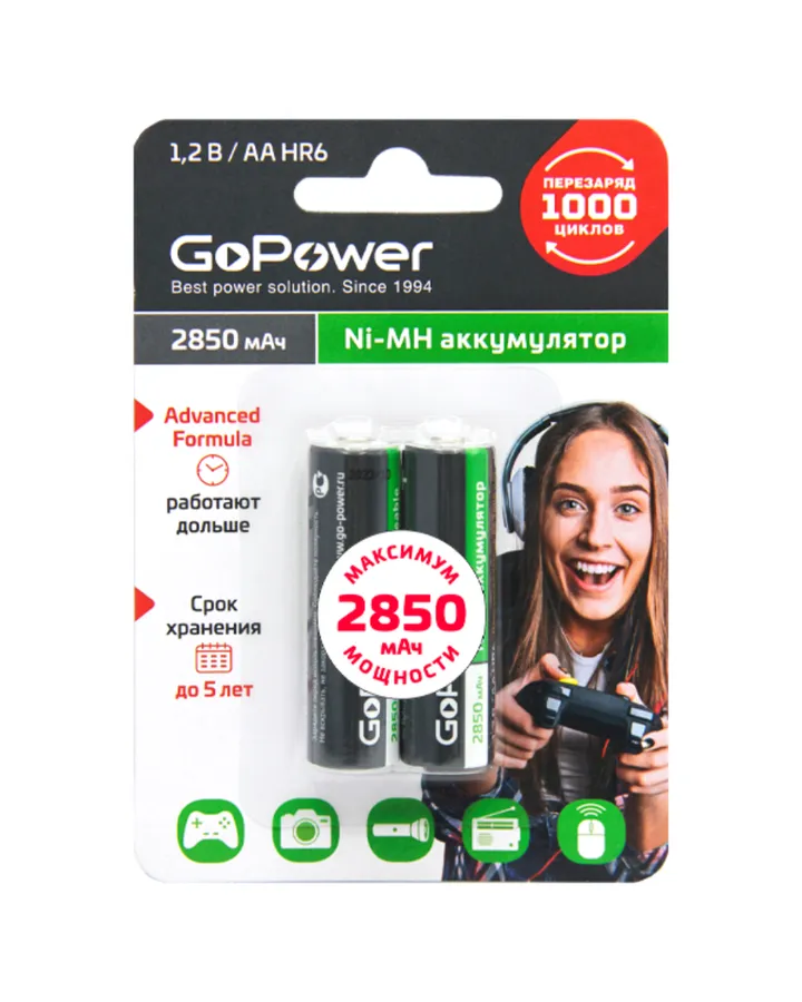 Батарейка AA GoPower Аккумулятор бытовой GoPower HR6 AA BL2 NI-MH 2850mAh