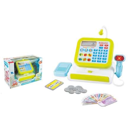 Ребенку очень понравилась касса. Отсек для денег открывается по нажатию кнопки и дзынькает как настоящая касса.