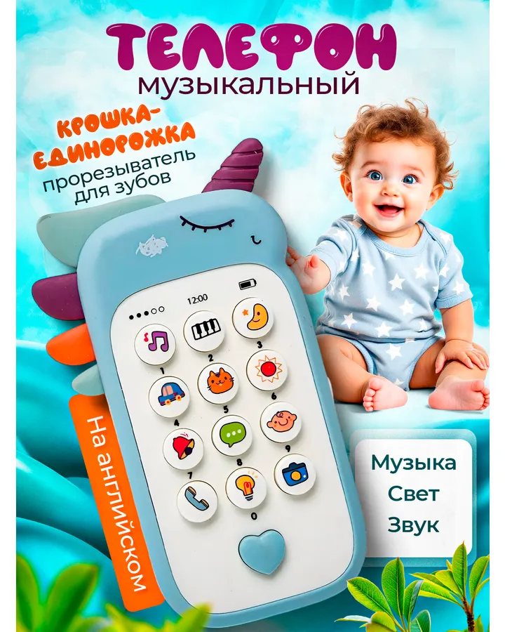 Игрушка MagicStyle телефон ЕдинорожкаЗвуков много, в меру громкость. Ребенок играет с 7 мес. Грызунки и звуки понравились. Звук детского смеха самый любимый.)