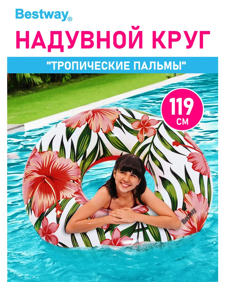 Круг для плавания Bestway Бествей Тропические пальмы Цветы, 119 см